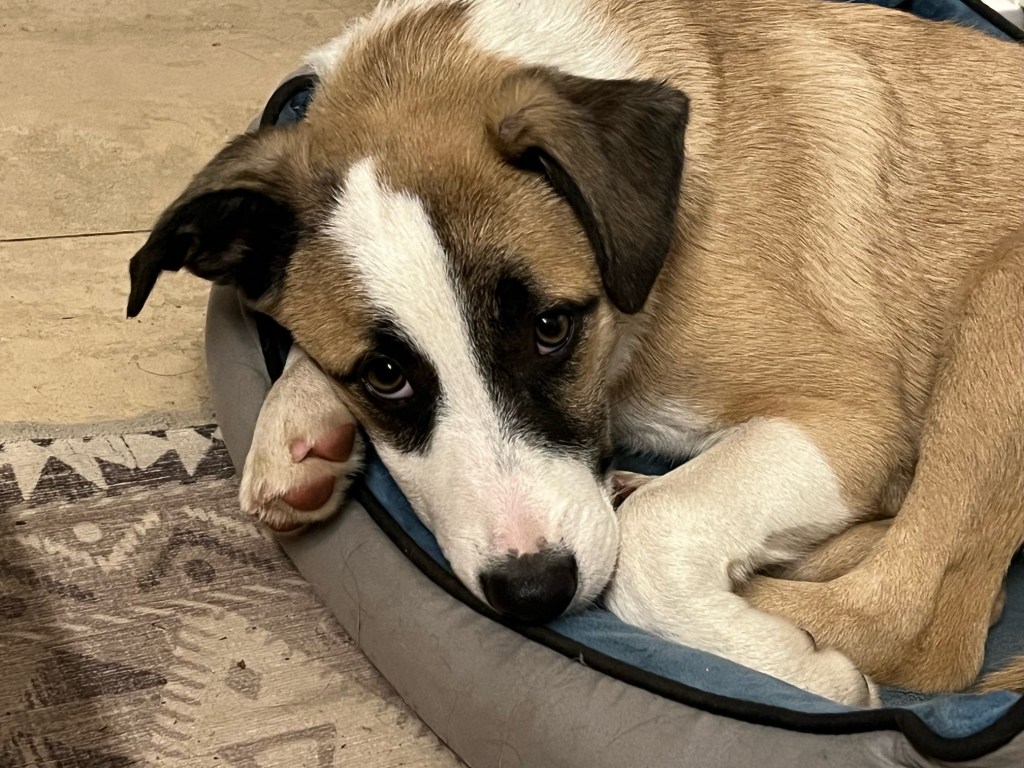 Charly is a really fast learner who already has basic training and even knows how to use a dog door! He needs an active family because he’s got a lot of puppy energy. He’d be fine with children as long as they aren’t really little because he’s still kind of rowdy and rough. He’s likely to be around 45 to 50 pounds full grown, so a nice size to be active without being too big!