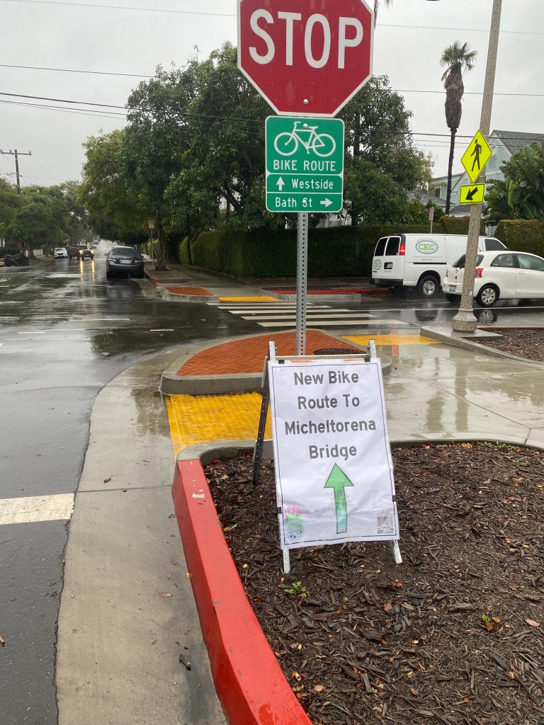 Amid the rainstorm this week, I had to drop off my car for service on the Eastside and bike back to my home. After dropping off the kiddo and rushing to load the bike and rain gear, I realized I had forgotten my helmet. Oof! No helmet and biking in the rain? Definitely violating my safety protocols. But I found that I was on a bike lane all the way to the beach path, then on State Street (with newly painted lanes all the way up!), and I navigated the community paseo on Sola. I’ve ridden Micheltorena thousands of times, but never without concern. I would have walked it on the sidewalk on this occasion, just to be safe in the rain. Instead, I had a protected bike treatment that got me safely over to the bridge and onto my street. I happen to know how hard so many advocates, electeds, planners, and engineers worked to find an acceptable solution that could provide this level of safety and service for people outside of a motor vehicle. I’m here to tell you that they were successful. We — the community together — were successful.