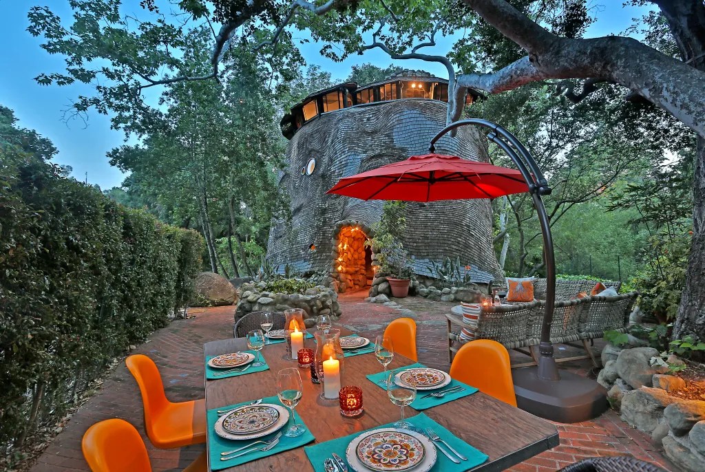 999 Andante Road – The Gaudi-inspired Whale House is a one-of-a-kind wood-shingled fantasyland on a private lane in Mission Canyon.