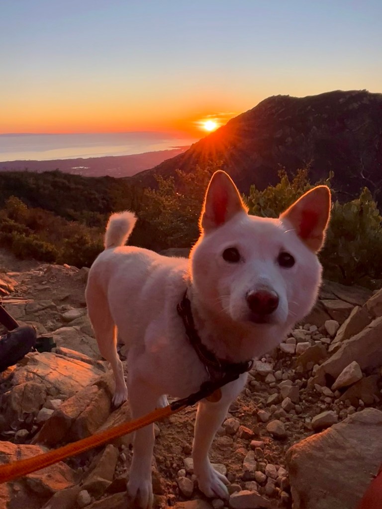 I hope that your new year is starting off on a sweet note, too. For an extra dose of sweetness, here’s a shot of Scout on her first hike of the year enjoying the first sunset of the new year, high above Santa Barbara at the top of Tunnel Trail.