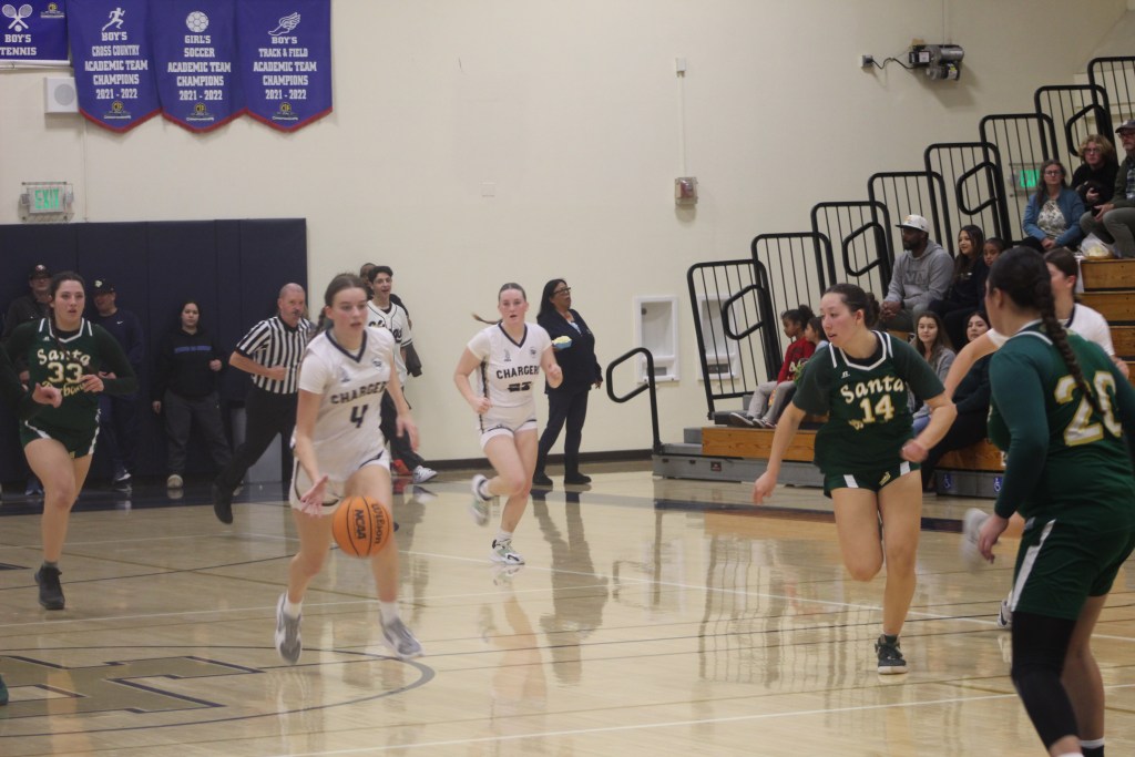 A basket inside by Chloe Adams with just under a minute remaining in the third quarter cut the Santa Barbara deficit to 48-41.