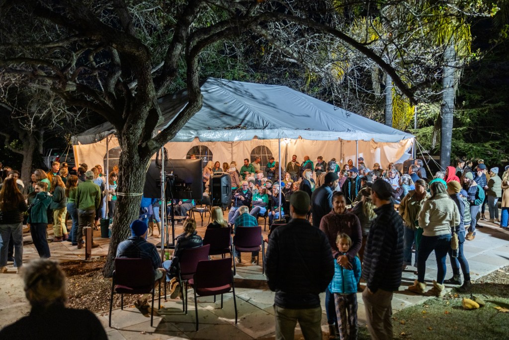 In one of the most powerful moments of the evening, Chumash elder Ernestine Ygnacio-De Soto stepped to the dais. “Been here 15,000 years; I’m not a newcomer,” she said. Heads nodded solemnly as she shared a message in her native Šmuwič Chumash language.