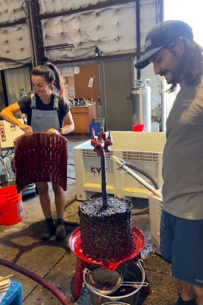 Cooking held more appeal — “an integral part of our lives,” Claire claimed of the meals they still prepare together in Kay’s kitchen. That steered the younger Wilson into hospitality at Cal Poly S.L.O. and then to a Sonoma-based cidery, where Claire finally found her affinity for craft beverage production. In 2018 and 2019, she traveled to Australia, California, and South Africa, taking advantage of the hemisphere swap to work two harvests on two continents in the same year. “At that point, I fell in love with winemaking and decided that’s what I wanted to pursue,” Claire recalled. She joined Provignage, a consultancy-meets-winery spearheaded by Sashi Moorman, Lompoc winemaker and co-proprietor of renowned wineries Domaine de la Côte and Sandhi.