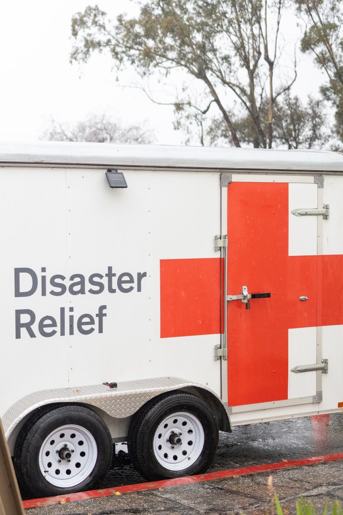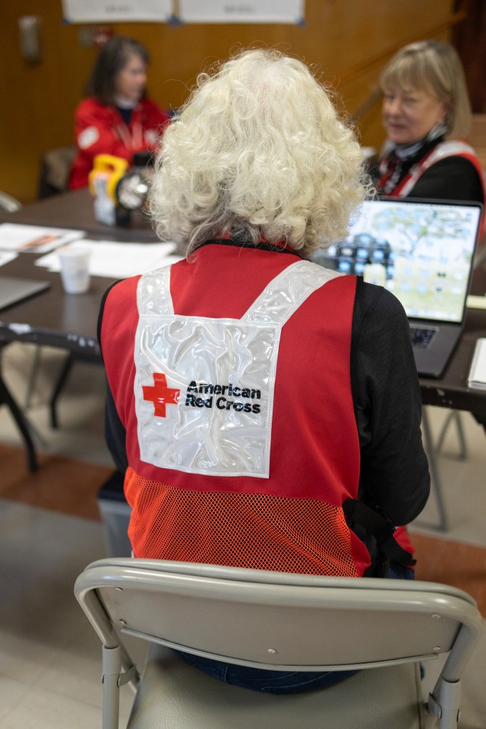 Red Cross volunteers set up at the evacuation shelter at the Wake Center on Turnpike Road during the storm on Sunday, February 4, 2024. | Credit: Ingrid Bostrom