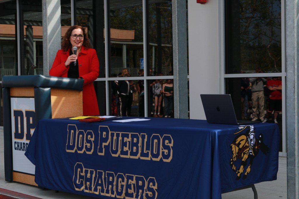 Taking the place of dilapidated portables at Dos Pueblos High School is the school’s new media center, which was surrounded by school leaders, reporters, and students in party hats for its ceremonial ribbon-cutting on Tuesday morning. The Virgil Elings Media Arts and Communications Center houses hundreds of students each day to learn about asking questions, meeting deadlines, and cooperating with their peers to tell and craft stories.