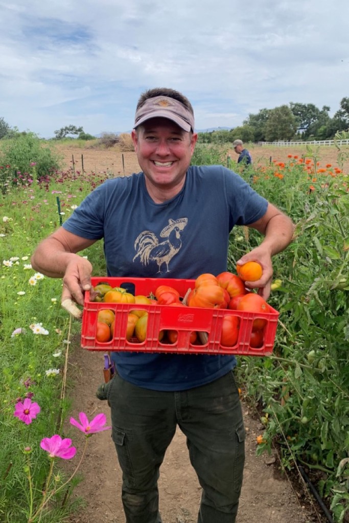 Tomatomania is being co-hosted by farmer Mark Donofrio, who left the restaurant business — he co-owned Larchmont Grill in Hollywood — to build The Starter Farm as an organic, regenerative source for flowers near the Santa Ynez River. Adhering to the practice of permaculture, which balances agriculture with nature, Donofrio uses flowers and select produce to bring in the good bugs, ducks to eat the snails and slugs, roaming quail to cut down on the other bad bugs each summer, and crop rotation to keep the soils happy.