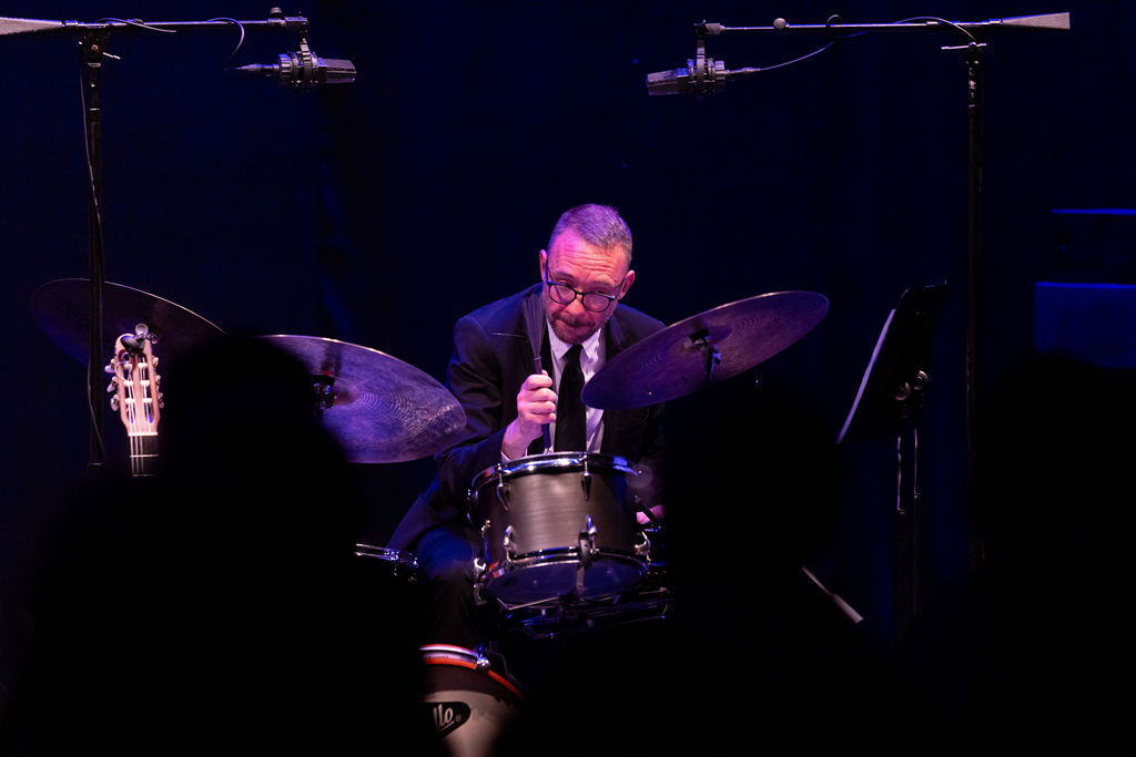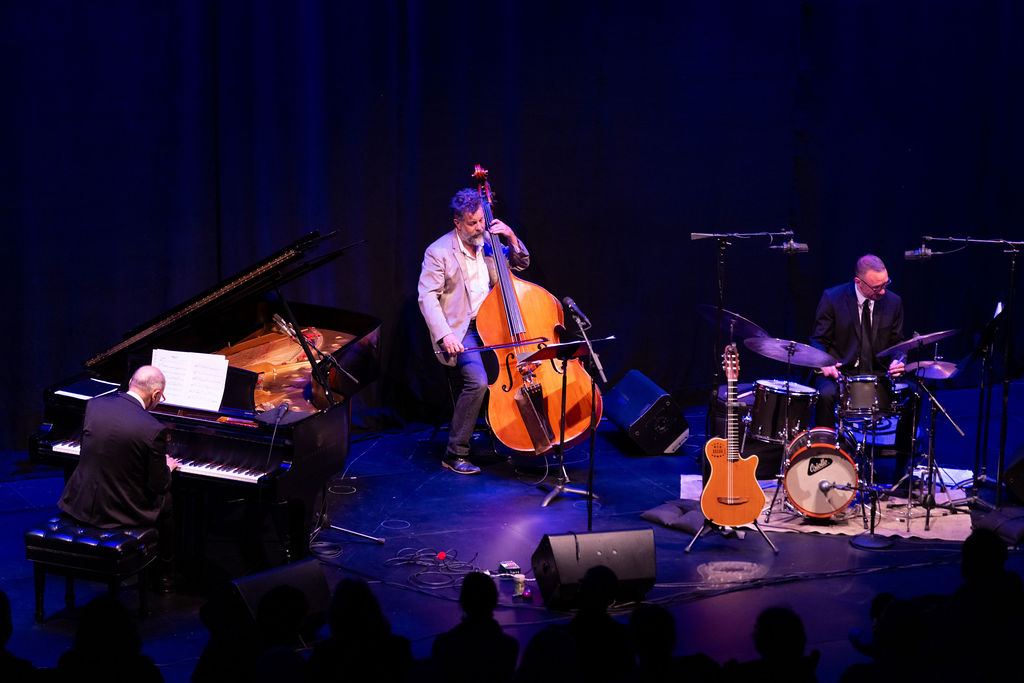Artese, who studied at UCSB years ago, moved back to Italy, and now mostly lives in Santa Barbara, has performed at SOhO and has released impressive recordings showing evolution in his artistry over the years. He brings classical training to bear in his approach to the piano trio tradition, not to mention a certain lyrical Italian jazz piano sensibility. Hearing his fine work on the Granada stage, I was reminded of catching a few Italian players featured in the lineup at the Umbria Jazz Festival last summer — including Stefano Bollani (with whom Artese shares a comedic flair), Enrico Pieranunzi, and Dado Moroni.