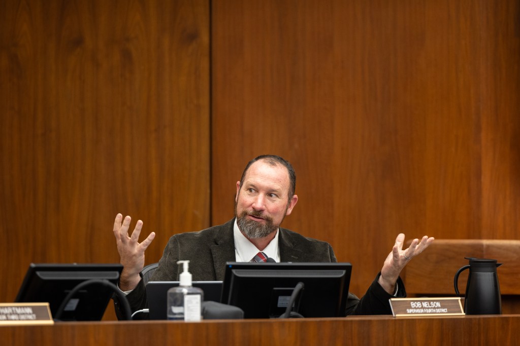 Supervisor Bob Nelson, perhaps the board’s most outspoken fiscal conservative, said that there were 110 open vacancies positions in the Sheriff’s Office. He questioned what impact the addition of five new investigators could make? These are funded positions, Nelson noted with some impatience. “We’ve got to fill the rest of these too.” Brown retorted that there were only 16 vacancies among sheriff’s deputies. The bulk of the unfilled positions were correctional deputies in the jail. When Nelson questioned why the positions of 10 recent retirees hadn’t already been filled, Brown shot back that his HR department had been doing “a yeoman’s job.”