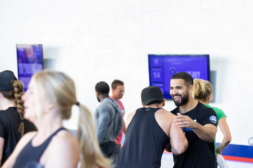 That’s also the idea behind the Saturday workouts, which are 60 minutes long so people have more time to engage with each other. At the Santa Barbara studio, there is a deejay on most Saturdays, lending the workout a dance-party feel. On the Saturday I went, Matt Nocas was spinning tunes by Fisher, Disclosure, and Marbs; other classes played more recognizable (to me) songs like Cardi B’s “I Like It,” Alice Merton’s “No Roots,” and Luis Fonsi’s “Despacito.” I even saw Coach Kyle bust some dance moves to Elvis Crespo’s “Suavemente.”