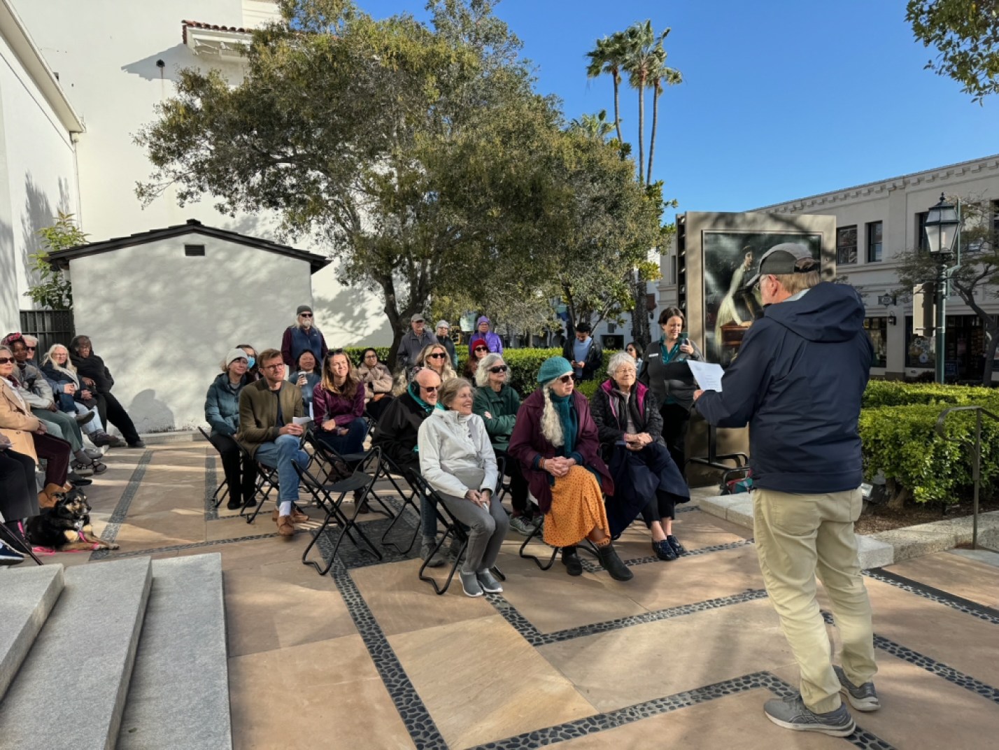 The Poetry Passages launch at last week’s First Thursday festivities also featured our local Poet Laureates, but a different crowd showed up for the outdoor event. Santa Barbara is a wonderful town for poetry. Lea Williams said the event was magical: “The wind died down, the rain held off, and there was joy and connection. The readings and the speeches gave everyone there a lovely picture of how this all came together and why it mattered.” Ride the bus, read a poem.