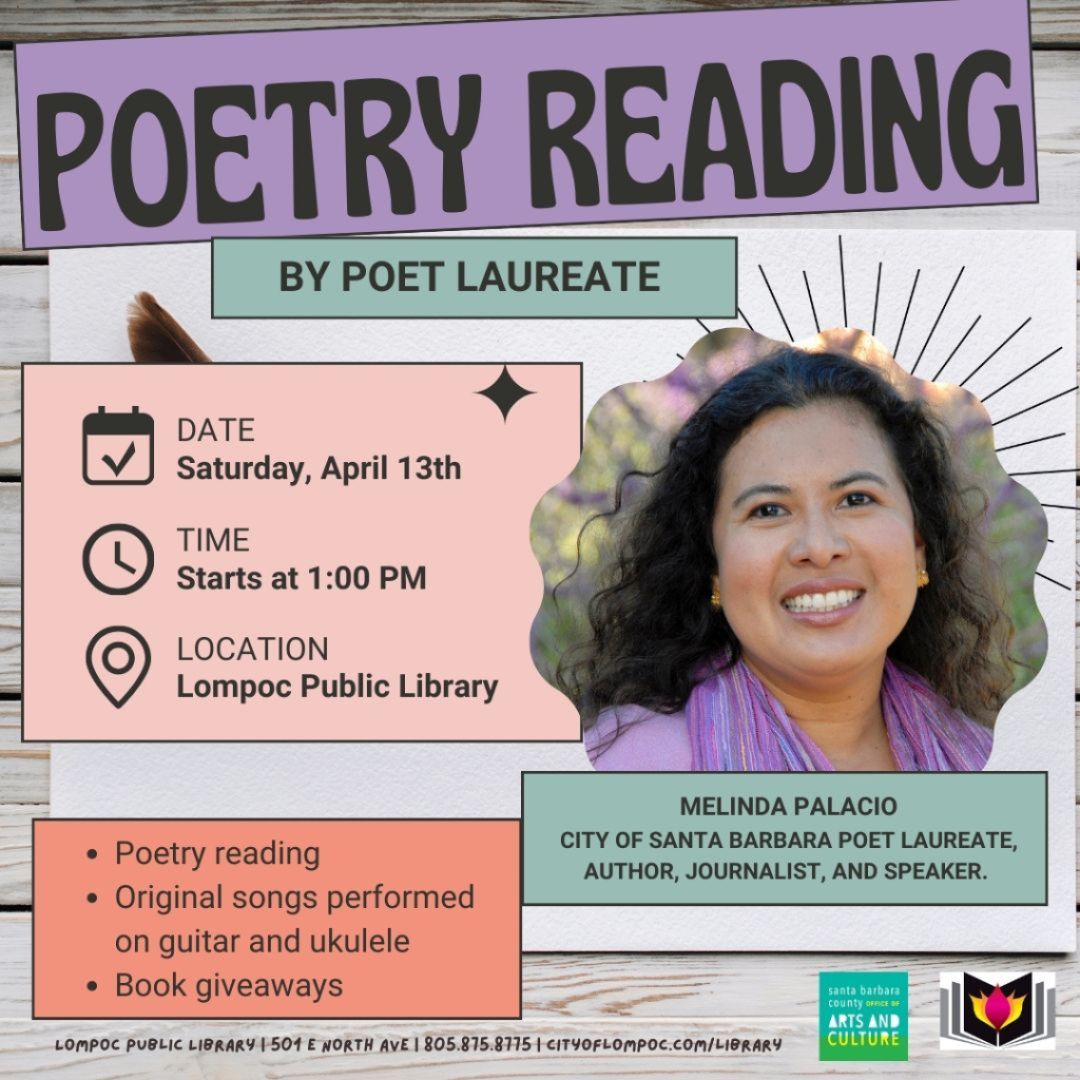 April 13: Lompoc Library features City of Santa Barbara Poet Laureate, Melinda Palacio, at 1 p.m.