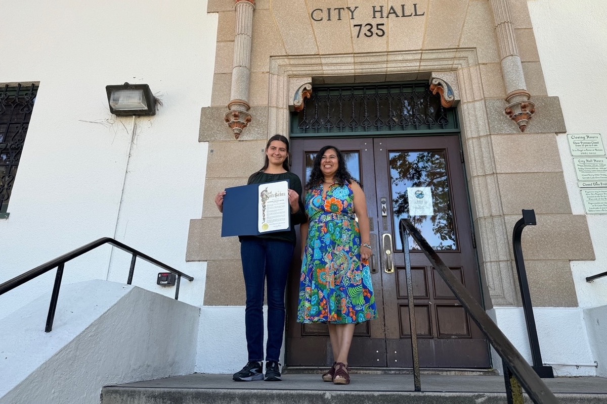 Santa Barbara Mayor Randy Rowse offered a proclamation for National Poetry Month on Tuesday, April 9, at the City Council meeting. As part of the ceremony, Dos Pueblos High School student Anna Matthews recited her award-winning performance of “The Listeners” by Robert Frost. She is the regional champion of the Poetry Out Loud Competition.