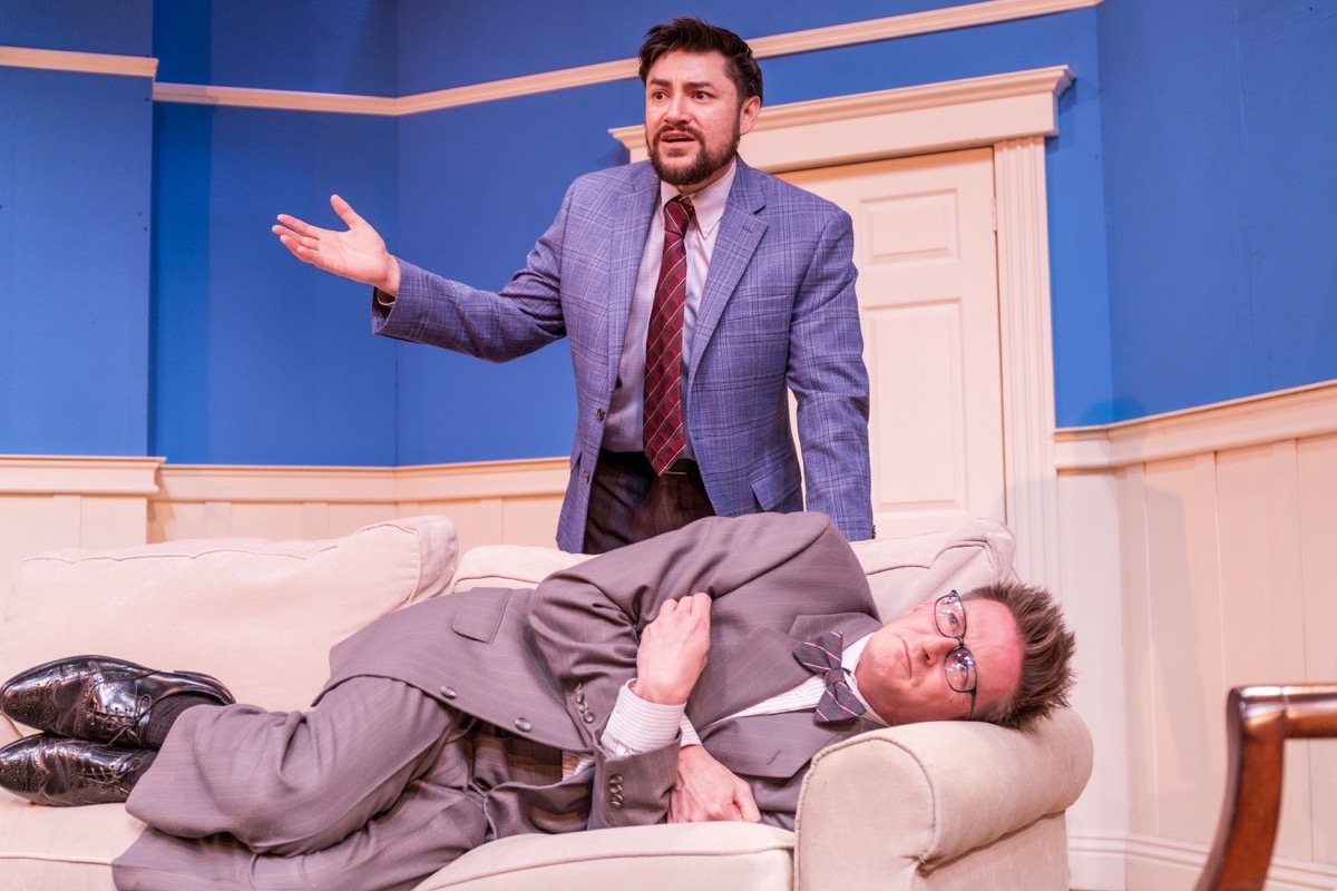 Meanwhile in Boston, high-powered political consultant Arthur Vance (Raymond Wallenthin) sees an opportunity in Newley’s floundering persona. He joins the team with the intention of rebuilding public perception of the new governor as a beneficial outsider: an average “everyman” the people can trust — putting him at odds with Riley, who wants people to appreciate Newley for his overwhelming competence in the position. Stark plays a delightfully awkward Newley against Wallenthin’s bombastic show-biz-energy Vance and Tiffany Story’s dementedly clueless front desk assistant, “Lulu.”