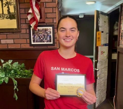 Mason Rice of San Marcos High boys volleyball and Mia Martinez-Tomatis of San Marcos High lacrosse received SBART Athlete of the Week awards at Monday’s press luncheon after their clutch play lifted their respective teams to victory in crucial Channel League contests last week.