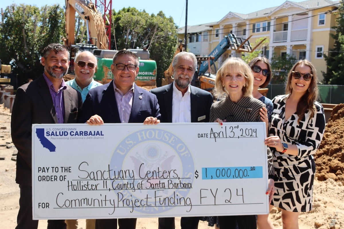 Not far from where a tall red crane towers over Anapamu and Chapala streets, Congressmember Salud Carbajal presented a large check for a million dollars to Sanctuary Centers CEO Barry Schoer on Tuesday, part of the $29 million being raised to build 34 studios for individuals with very low incomes. The future residents will have access to Sanctuary’s mental health outpatient clinic, which has occupied a blue Victorian on the corner at De la Vina Street for more than 25 years, as well as round-the-clock care for residents of the top two floors of the five-story building.