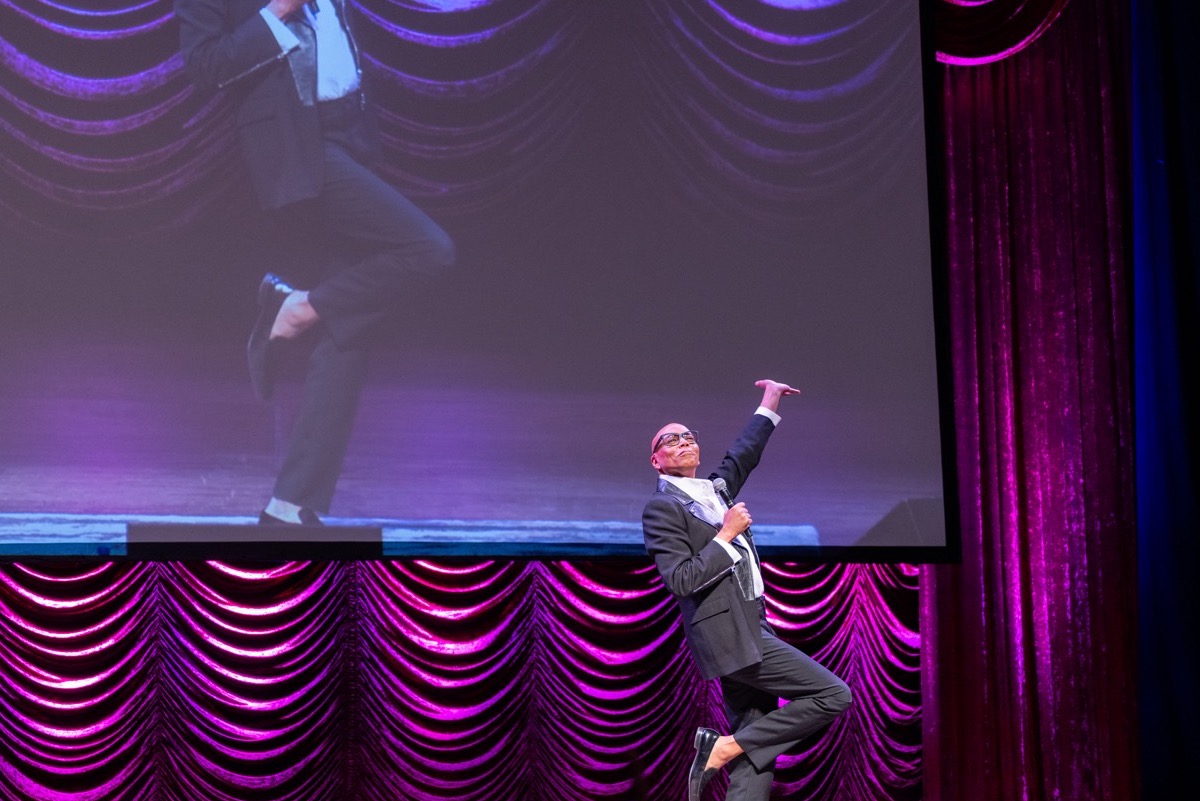 “Is Oprah here in the audience? Is Ellen here?” asked RuPaul as he greeted the crowd for the sold-out UCSB Arts & Lectures (A&L) show. “No. Well, good — we can talk shit about them then,” he laughed. This was right after twirling A&L’s Director of Public Lectures Caitlin O’Hara — who was celebrating her birthday that night in a fabulous red caftan — as she introduced him on stage. He then made a few jokes about sponsors Lynda Weinman and Bruce Heavin, — “rich people, darling” — before launching into an amusing evening of personal stories, part of the promotional tour for his new memoir, The House of Hidden Meanings.