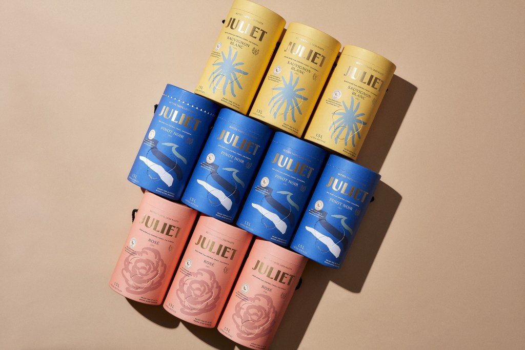 Juliet’s chic Eco-Magnum™ packaging is made with 100 percent recyclable materials and produces 84 percent less waste than glass bottles, explained Pipher. The wines themselves — a sauvignon blanc, grenache rosé, pinot noir, chardonnay, cabernet sauvignon, and limited-time orange — are produced in a low-intervention style (meaning no artificial additives) by a Certified California Sustainable winery located in the Santa Ynez Valley.