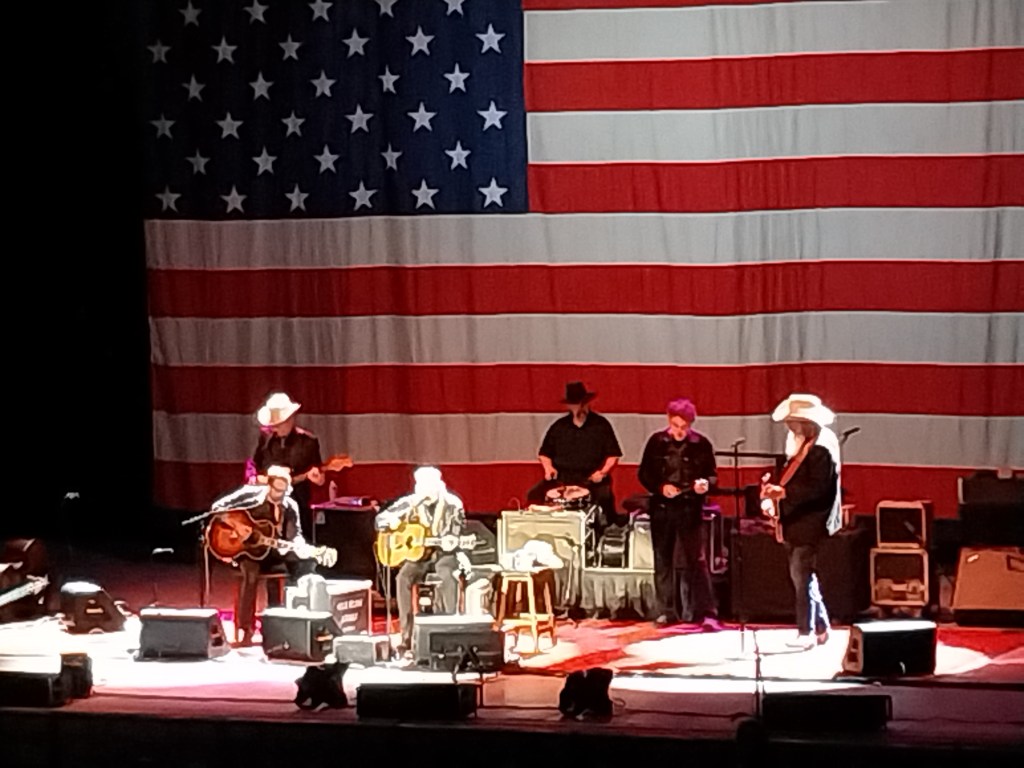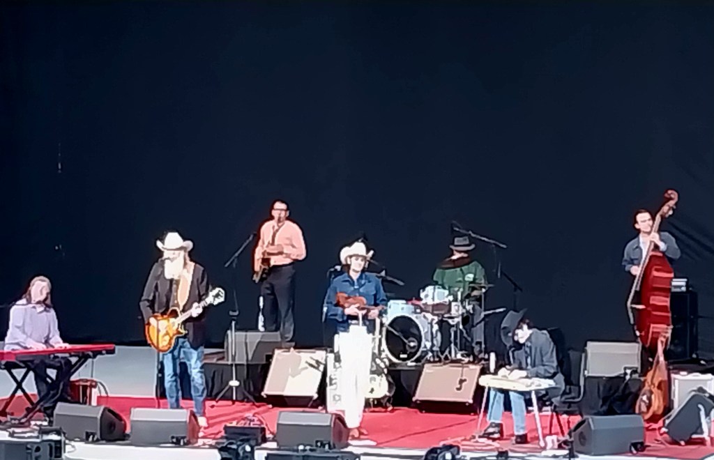 This was one of those Bowl nights where the opening act was of critical importance. Asleep at the Wheel, the timelessly hip neo-western swing band formed in 1970, lives up to only half of its band name — the wheels of a long road stretching back to 1970. They are anything but asleep, as witnessed via their potent set of mostly Texas-related and often Bob Wills–referential songs, with sax, steel, and fiddle in tow in the seven-piece outfit bustling around tall lead singer and guitarist Ray Benson’s bold, mega-bearded presence. (Incidentally, Benson was the most articular recurring commentator on Ken Burns’s fine country doc series.)