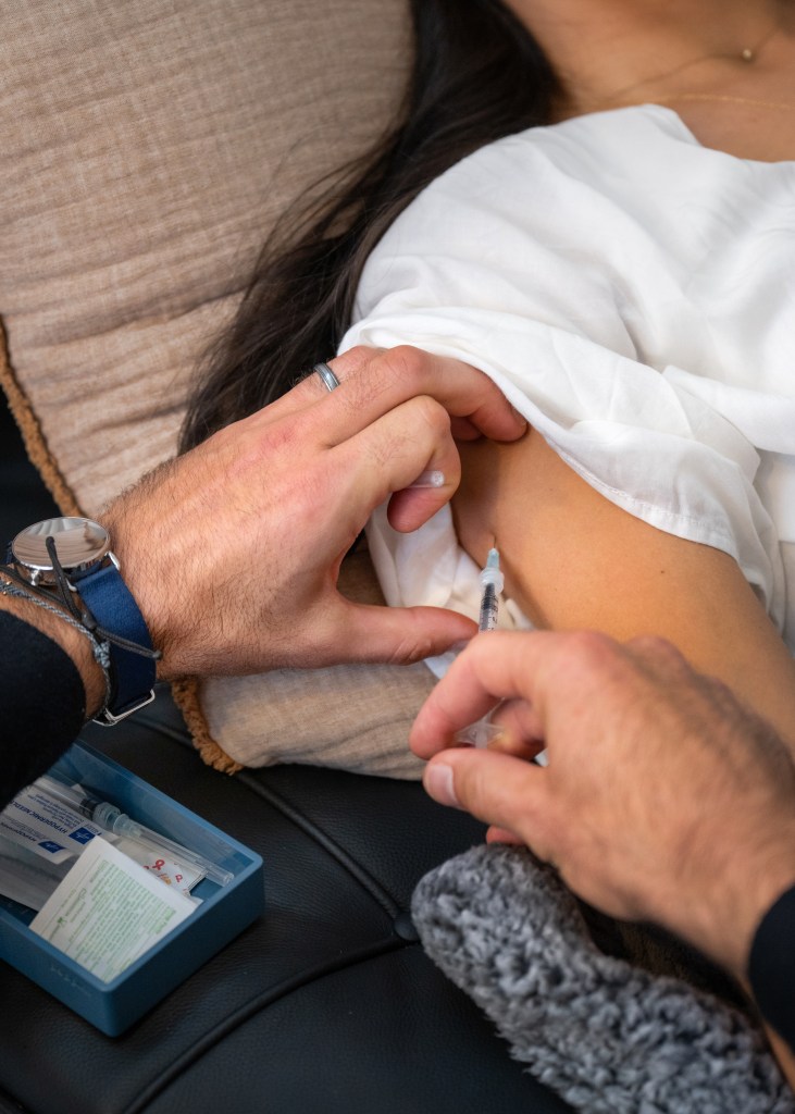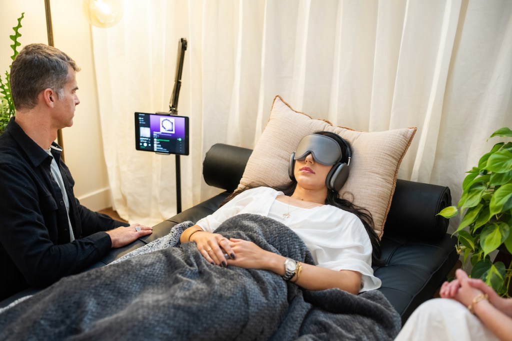 After sticking the needle in my arm, he reassured me that we could up the dose if needed. Then came a bougie eye mask and Apple headphones. The world went dark, my hands clammed up, and I did breathing exercises until the drugs kicked in a few minutes later.