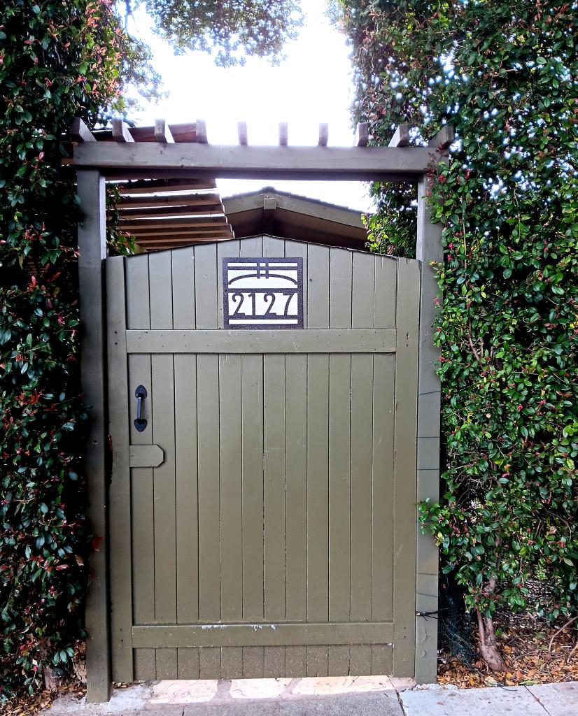 When I first approached the 1916 home located at 2127 Castillo Street, hidden behind a tall hedge, I wasn’t sure what to expect. I did notice, however, the attractive Craftsman-style gate at the entrance.
