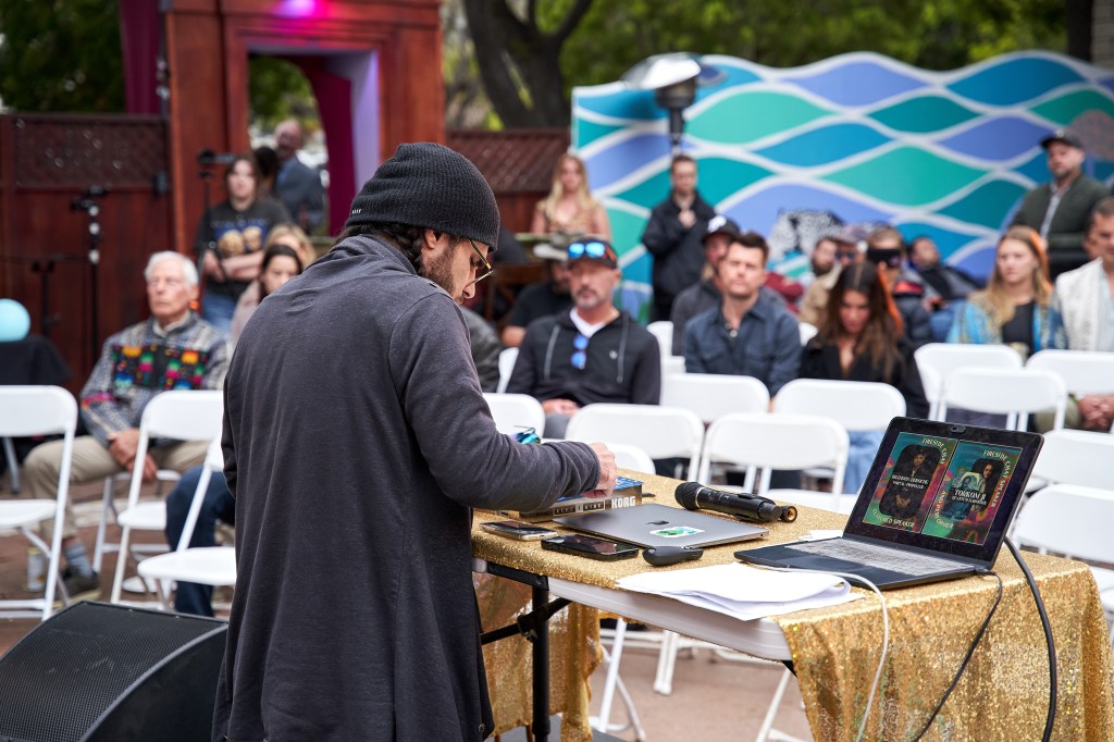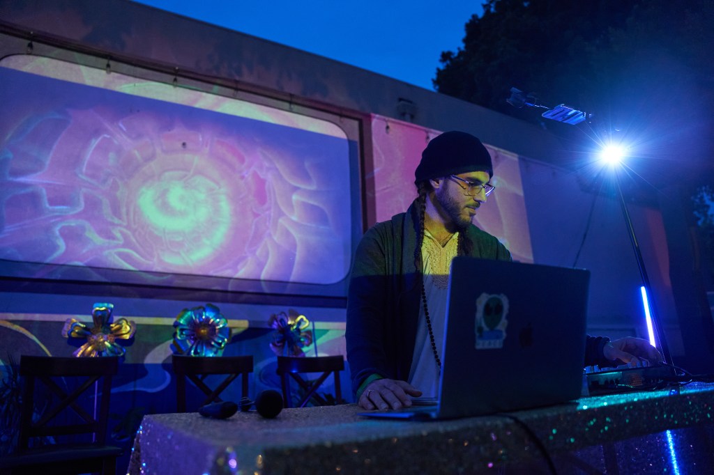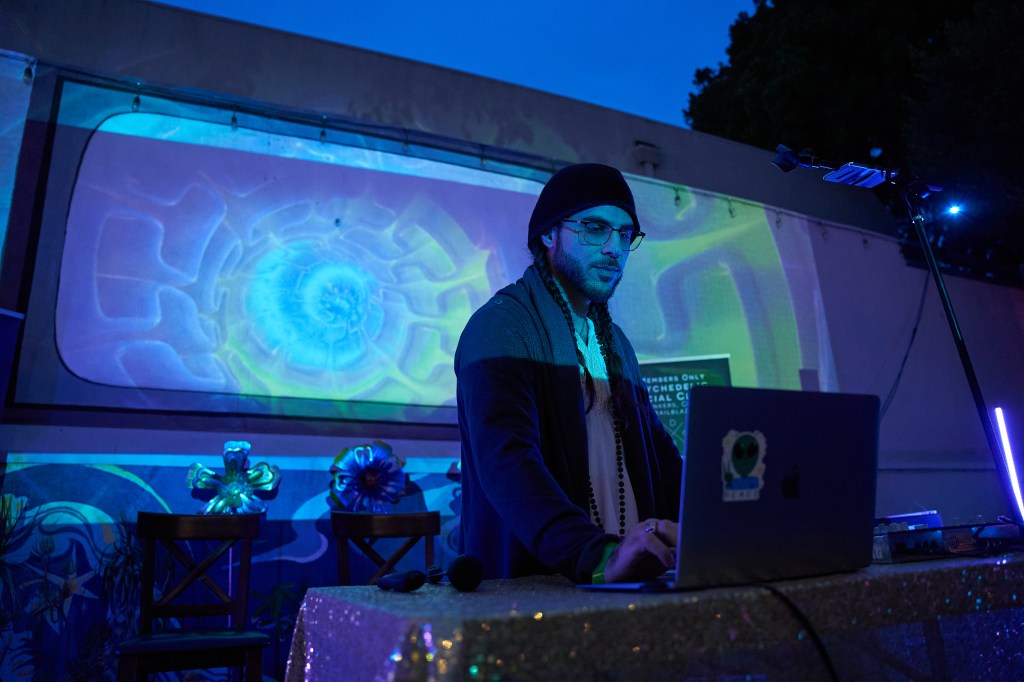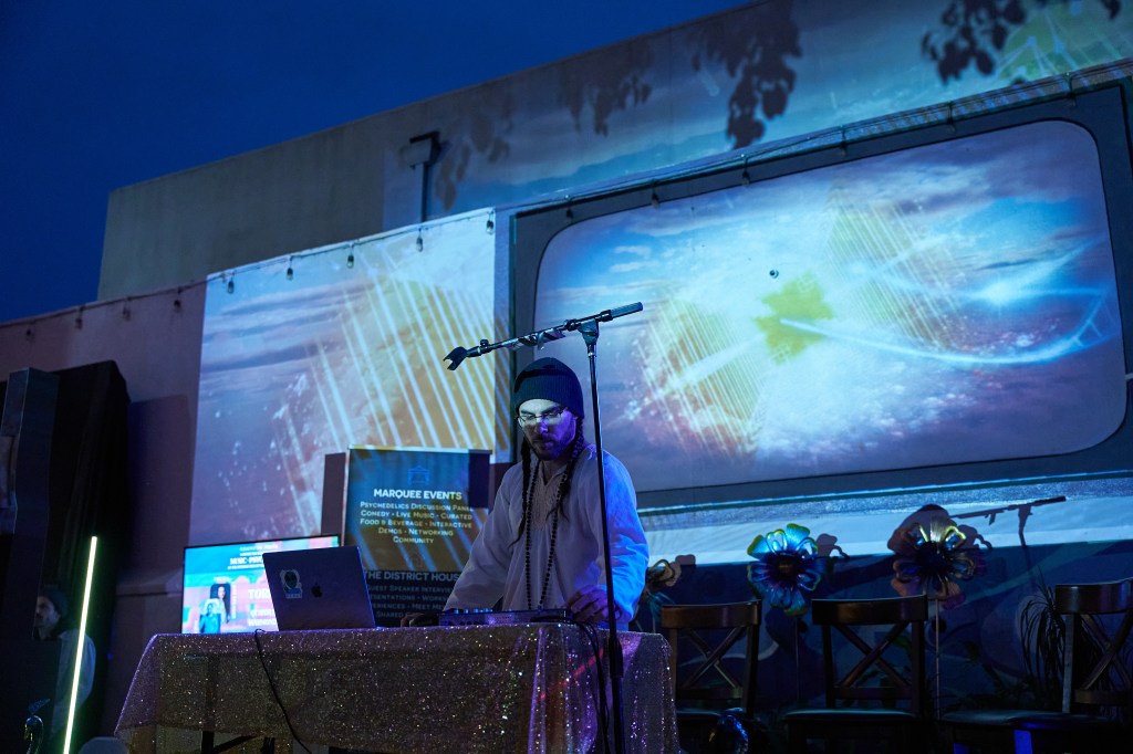 Following the panel, different musical performances embraced the space. The sound was everywhere, paired with “trippy” AI visuals and wavy projections on the walls. Everyone seemed to be in a good mood, even the vendors handing out psilocybin samples and offering their psychedelic wares, despite the May gray hanging overhead. People danced, ate food, and were, generally, merry. Maybe music is healing.