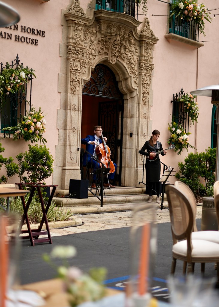 Another distinction with this 77th annual festival is its status as “A New Era,” with the anointing of a new Academy head, Shauna Quill, after the departure of longtime President and CEO Scott Reed last year. The musical menu also accounted for special consideration, from the ghostly Steinway digital “player piano” serenade, to the very real, real-time mandolin stylings (Italian style) of the inherently versatile Ashley Hoyer on the grounds. Hoyer showed up again before the official dinner bell, performing “Deh, vieni alla finestra” from Mozart’s Don Giovanni, joining Academy alum cellist Chas Barnard in accompanying baritone Byron J. Mayes.