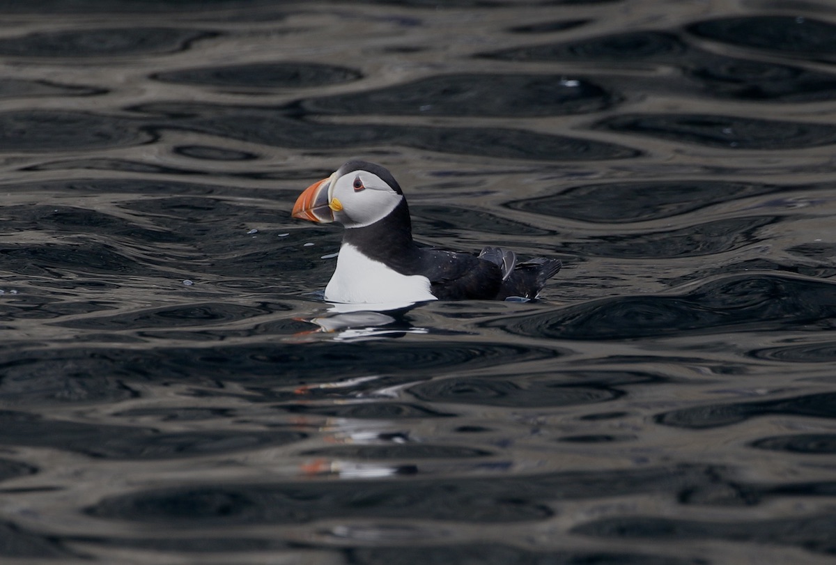 We cruised alongside Great Blasket Island with its large colony of gray seals, then motored farther out to sea to the islands of Inishnabro and Inishvickillane, where the skipper assured me we’d see puffins. It wasn’t long before I saw one of these birds with the comical beak swimming by, and I called it out excitedly to the captain. “We won’t stop for this one,” he said. “There’ll be plenty more.” How right he was!
