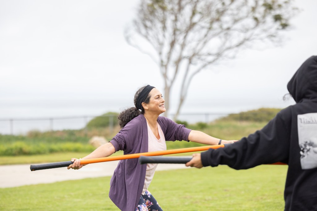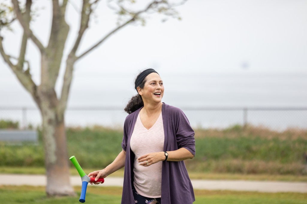 As someone trying to preserve my joints for a planned active old age, I appreciated that Hayes’s workouts offered intensity without heavy weights or high impact. Hayes describes the community workout as part of an overall wellness practice, and I found his holistic approach to fitness inspiring and genuine. Although we were there for a challenging workout, and the sun never broke through the May gray/June gloom, Hayes always encouraged us to bask in the beauty of the outdoors, and to observe and enjoy our surroundings, whether admiring a flock of pelicans on the wing, listening to the grunting of the cormorants perched in a nearby tree, or watching the rowers in a regatta powering along the coast.