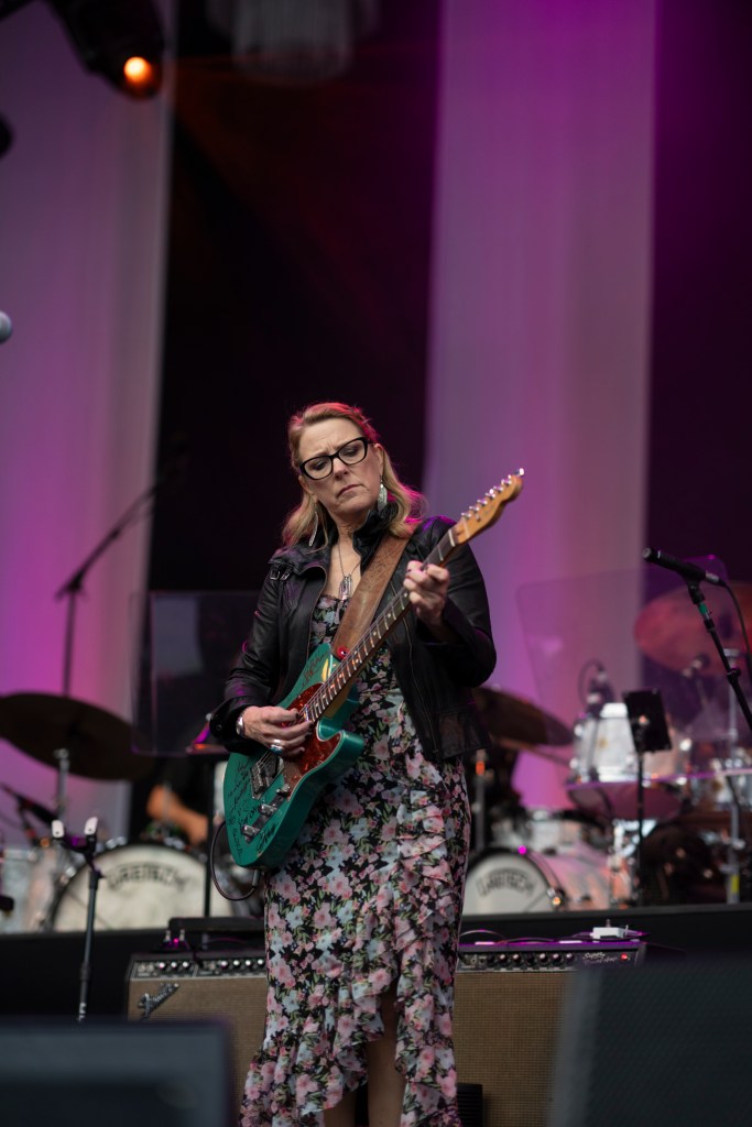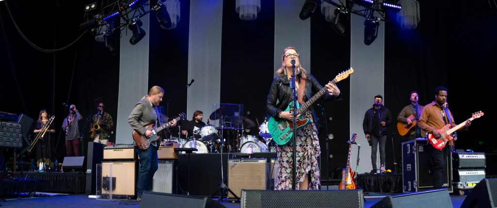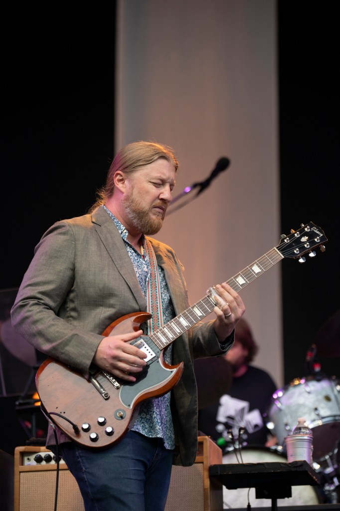 From the opening song, “Hear My Dear” — a keynote opening track of their epic 24-song 2022 album I Am the Moon — the special chemistry of the Tedeschi Trucks Band immediately took charge of the venue for two hours. Deep into the song, Tedeschi’s spotlight was shared by Trucks’ sweetly virtuosic slide work, embodying the fact that this group is rooted in the sympatico of Tedeschi’s emotional pitch and Trucks’ almost voice-like melodic flexibility of his slide guitar work. They get along famously, musically.