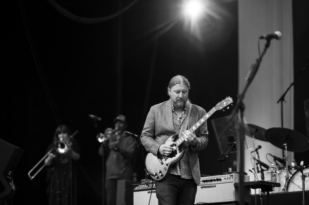 Come encore time, the extended family gathering vibe filled the stage as Feat members Payne and Sharrard joined the ensemble party on bluesman Sleepy John Estes’ “Leaving Trunk” and jazz legend Rahsaan Roland Kirk’s “Volunteered Slavery” to close. The Feat guests burned boldly in their solo moments, and when it came time for Trucks to stretch out, he teasingly toned things down with a short murmuring solo, and then humbly yielded his time to a different “slide- oriented” voice in the band, trombonist Elizabeth Lea.