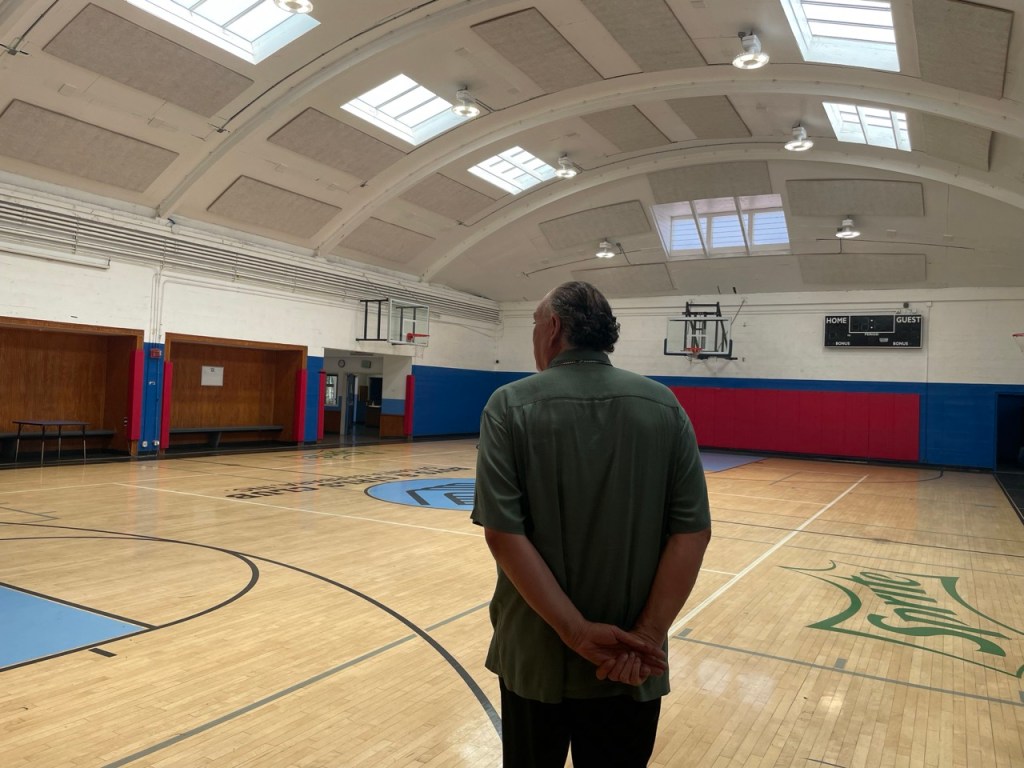 Alvarado’s voice echoed as he walked through the gym, “This is where I learned to tie my shoes and chew gum at the same time,” he laughed.