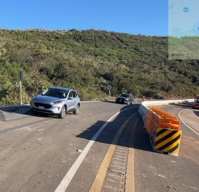 As of about 8 a.m. this morning, Caltrans announced that one lane of State Route 154 reopened. Traffic signals are in place to allow traffic to go through in one direction only, in turns on the green light, between San Antonio Creek Road and Painted Cave Road.