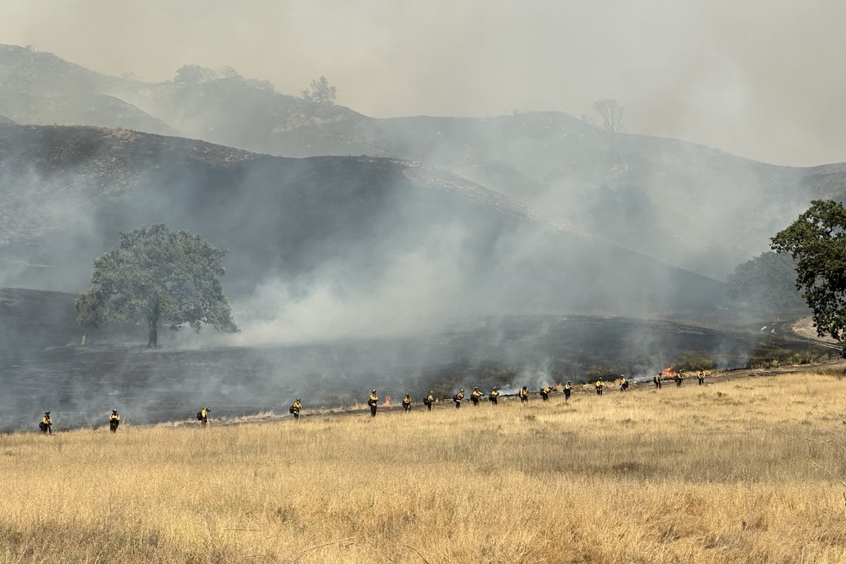 Supervisor Joan Hartmann visited the frontlines with Santa Barbara County Fire Chief Mark Hartwig on Thursday, saying that more than 3,300 personnel were working this fire. “It struck me just how tall and dry grass is right now — a curse of the blessing that was record rain,” Hartmann observed in an update. Firebreaks and dozer lines along ranch roads and trail systems were underway, amid temperatures hovering around 100 degrees in the valley and higher on the fireline.