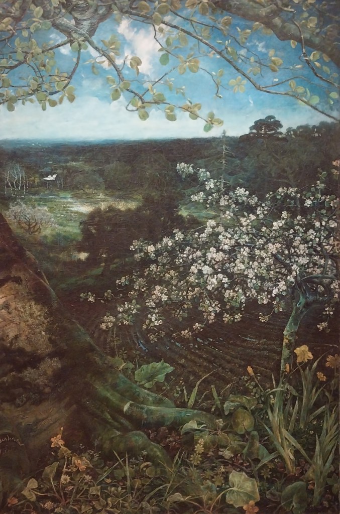 Courbet and Narcisse Díaz de la Peña present alternate views of seascapes at sunset, the former tranquil and the latter stormy, while Cecil Gordon Lawson’s “A Hymn to Spring” qualifies as the exhibition’s largest and most unapologetically vivid painting, a meadow scene with trees tickling the foreground.