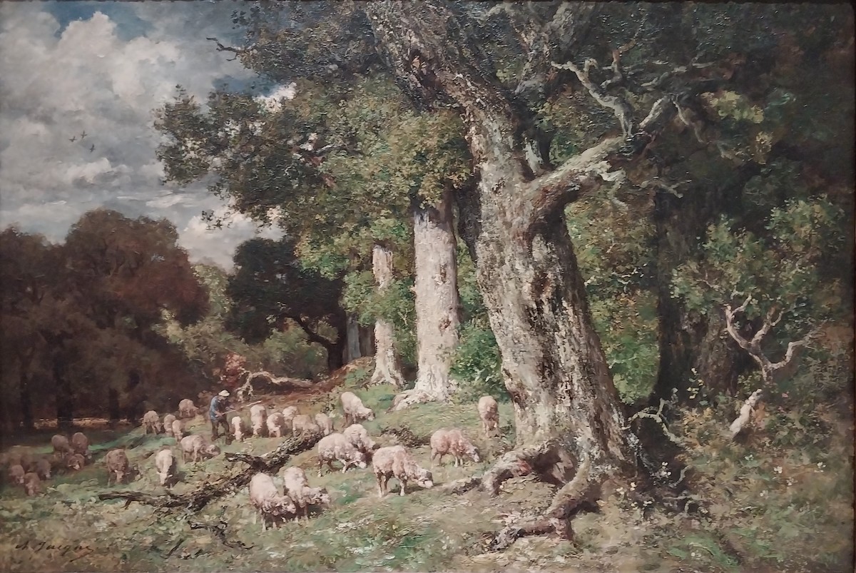 In a bit of trans-institutional déjà vu, the SBMA exhibition also features a handful of paintings from the Barbizon school, including the rustic charm and artful picturesqueness of Charles-Émile Jacque’s “Herd of Sheep in the Forest at Fontainebleau.” This French art movement of the mid-19th century, including the looming presence of Corot, has a bold stake in the Ridley-Tree gifts to the Westmont Museum collection, as seen in that museum’s tribute shows to the grand donors.