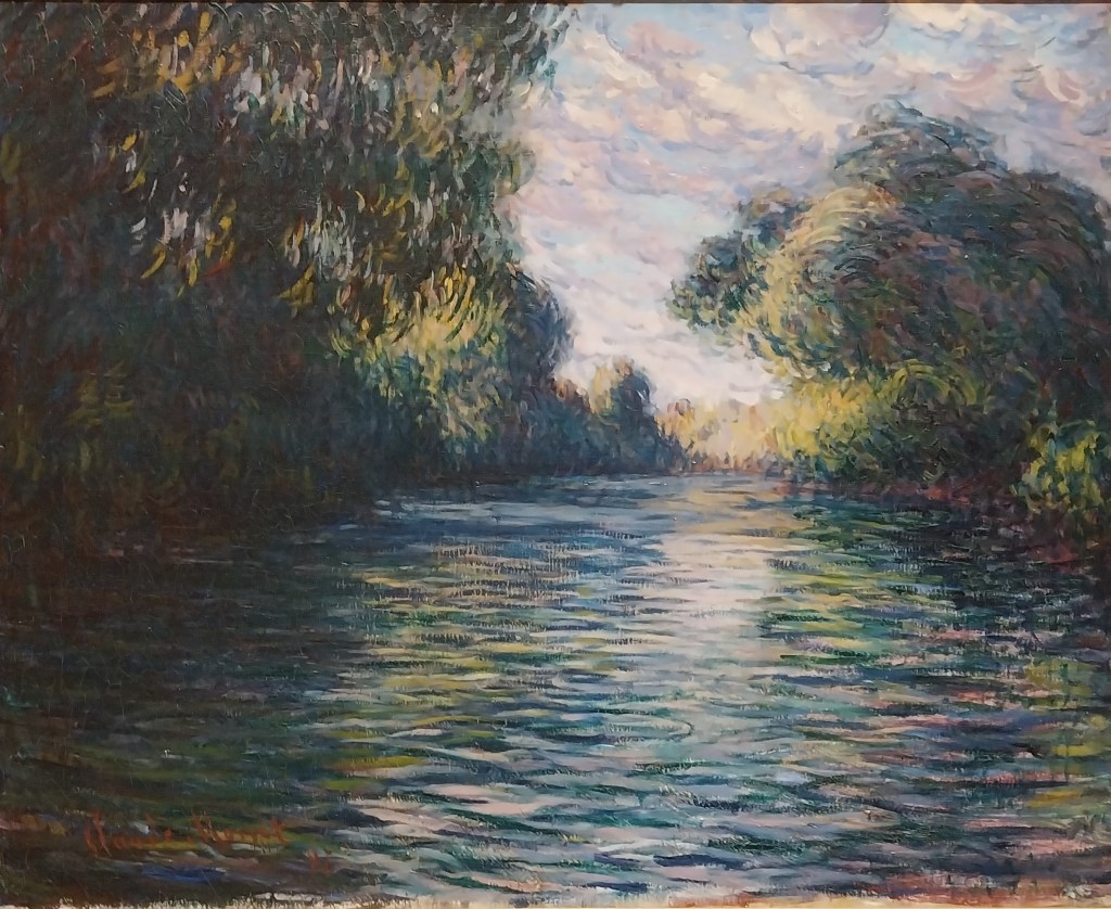 One of the showstoppers nudges toward the innovative late-19th-century pull of impressionism, by a master of the form. Claude Monet’s spectrally rippling ode to a legendary river, “Matinee sur la Seine (Afternoon on the Seine),” projects a seductive allure, at once basking in proto-Impressionist atmospherics while also vibrant with dancing polyrhythmic brushstrokes.