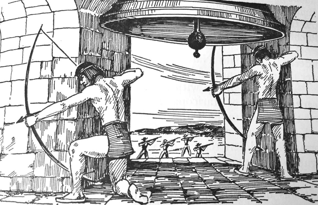 On Ripoll’s return to the mission, he found nearly 400 Chumash fighters armed with bows, arrows, and machetes. The group had been informed, falsely, he wrote, that the soldiers were planning to kill them all the next day as punishment for the violence at Santa Inés and La Purísima.