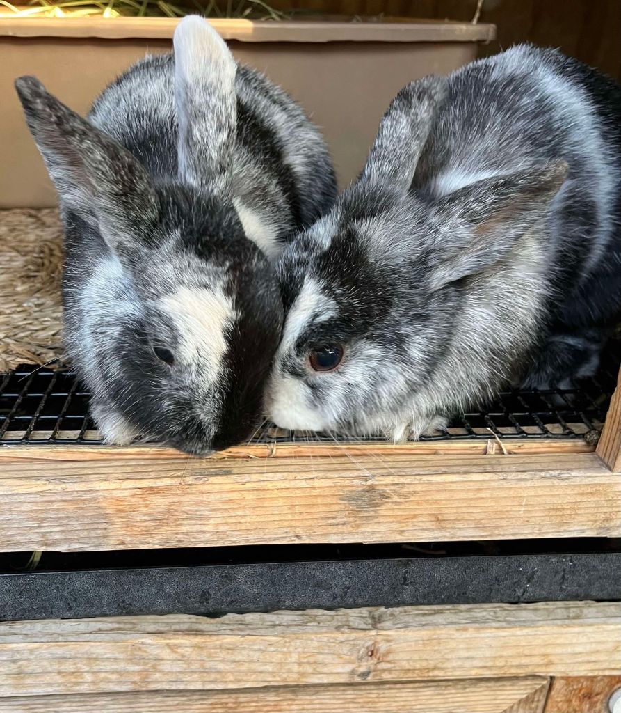 This pair of young bunnies are brothers. They are harlequin mixes, which means they have the most fun fur coloring. These boys also have sweet personalities and good litter habits. They get along very well and would love to bring their gentle, friendly selves into a loving family!