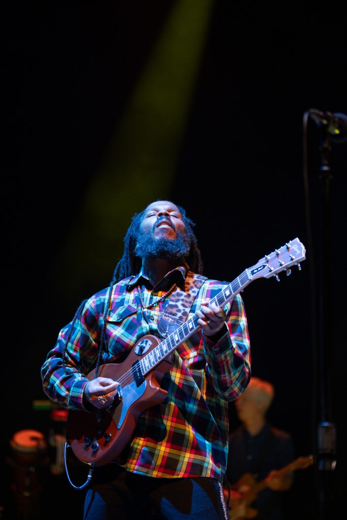 Ziggy started out playing famous recorded speeches by Martin Luther King, John F Kennedy and even words from his dad Bob Marley were mixed in as the eager crowd settled in for his anticipated set. The band soon locked into a traditional Reggae groove held together by the legendary Jamaican drummer Santa Davis, who toured and recorded with Peter Tosh and countless other Reggae artists over the last 50 years. The first couple of songs that Ziggy opened with were mellow and subdued. The large crowd wasn’t feeling too inspired until Ziggy popped open two songs from his dad, “Africa Unite,” along with “We and Them.” Those two songs got the crowd bubbling.