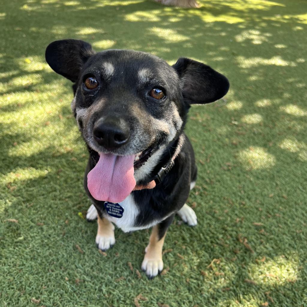 This 4-year-old Chihuahua mix has a gentle nature and adorable expressions that make her simply irresistible. Tinley is a quiet, mellow girl who’s looking for someone to take it easy with. She still has a fun, playful side, but she’d love nothing more than to cuddle up on the couch and watch some Netflix by your side