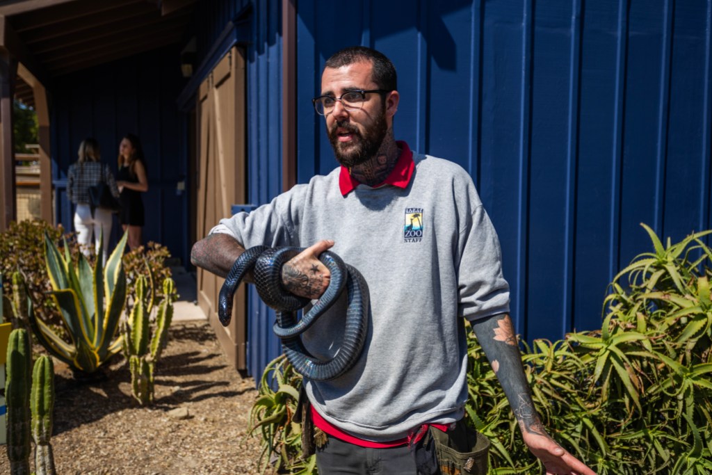 Holding a 4-year-old eastern indigo snake, zookeeper Martin Hanson explained that he does a lot of work with California red-legged frogs, which are the state’s largest native amphibian.