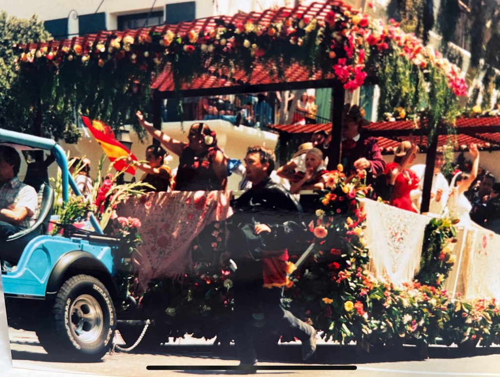 My family (Don Juan Pacifico Ontiveros) first celebrated Fiesta at their ranchos (Rancho San Juan Cajón de Santa Ana [1837] and Rancho Tepusquet [1855], renamed Rancho Santa Maria). In the 1930s, my family participated in the in the Santa Barbara Fiesta Parade on horseback along State Street. My great-uncle once rode alongside Mexican movie star Leo Carrillo (The Cisco Kid). The parade is the highlight of Fiesta. I rode on my family’s float in 1992 and 1993. A huge amount of time goes into building and decorating the floats. After the parade, we would gather for the mayor’s awards ceremony for best float, etc. My family won many! Afterward, we go straight to the Beer Garden at the De la Guerra Adobe for cold beer and spicy tacos while mariachis livened up the atmosphere. From there, we stroll into the placita (De la Guerra Plaza) to watch the last shows on the main stage. Viva to 100 years of Fiesta spirit!