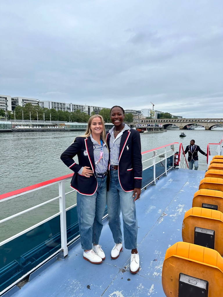 She also took inspiration from the 15,000 fans watching games in the Paris la Defense Arena where the final rounds were played — something her sister Jamie missed at the COVID-emptied venues of Tokyo. Ryann said, “Looking up at the flags and people wearing our caps brought tears to my eyes.”