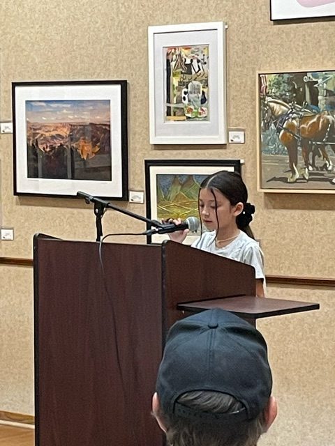 Our youngest reader was 10-year-old poet Soe Bender. With two parents who are writers, it’s no wonder Soe is already being published in this year’s California Poets in the Schools 2024 State Anthology. She was inspired to write her first poem when she was 8 years old, after reading Inside Out & Back Again by Thanhha Lai. I wanted to know what she liked about writing poetry. Soe said, “I like that I can express my feelings through the rhythm of the words.” She reads her work with authority and energy. She is an impressive child and poet.