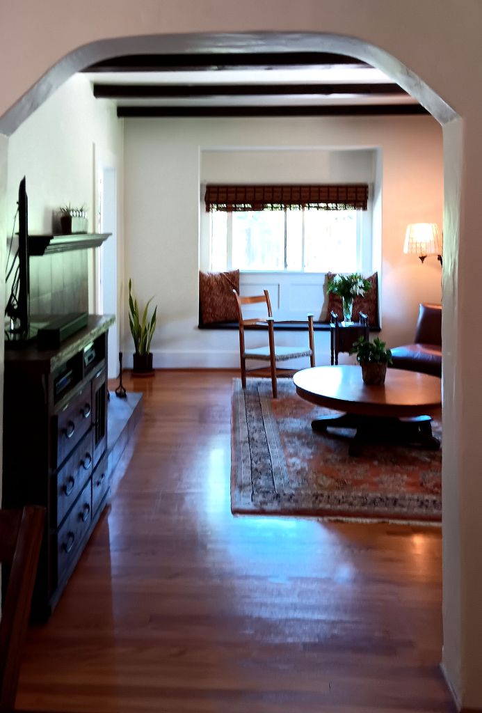 Some studies have shown that music can have a positive effect on plant growth. Perhaps the family that lived in this home in the 1920s also contributed to the lush greenery in the garden. Val and Gladys Felger were both involved in music. Val owned a music store in Santa Barbara that sold phonographs, records, radios, and pianos. Gladys taught dancing in the home. Her pupils included many young girls studying ballet, and she taught ballroom dancing to adults as well. She and some of her young students danced in the first Fiesta in 1924. Gladys also danced at some of the local cinemas here at a time when it was common to combine a movie with live acts on stage. Movies at that time were often shorter than they are today, so singers and dancers were often added before or after the film to fill out the program.