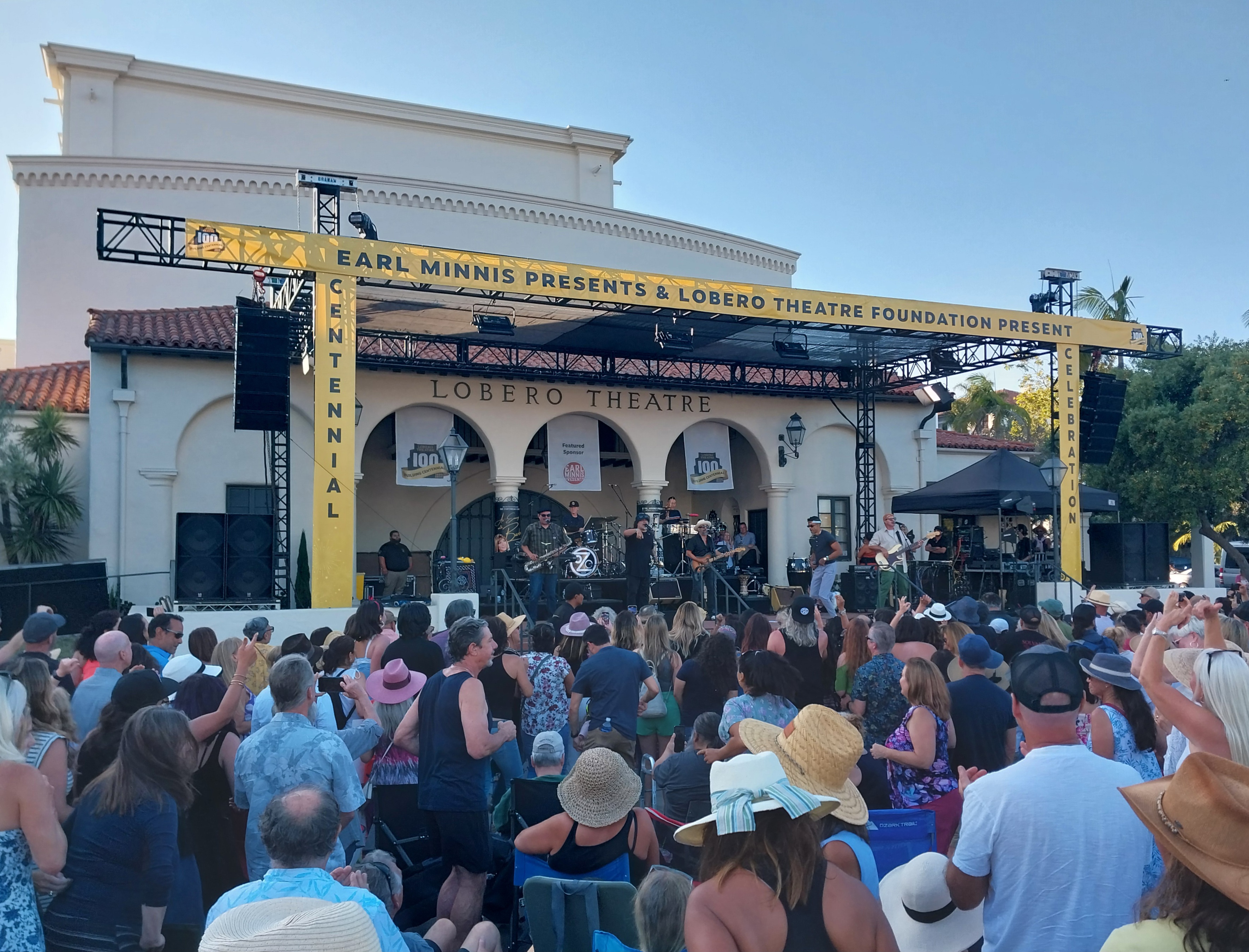 The official cause and backdrop for the major block party in front of the beloved Lobero Theatre was another centennial celebration in town — following 100th b-days this year for The Granada Theatre and “Old Whatever Days” Fiesta tradition. Here, the Lobero, which celebrated its grand 150th anniversary of the theater’s founding last year, toasted the centennial of the distinguished structure — designed by George Washington Smith and Lutah Maria Riggs — replacing the more stolid original Lobero. Busy local promoter/philanthropist Earl Minnis supplied the support to bring the party to life.