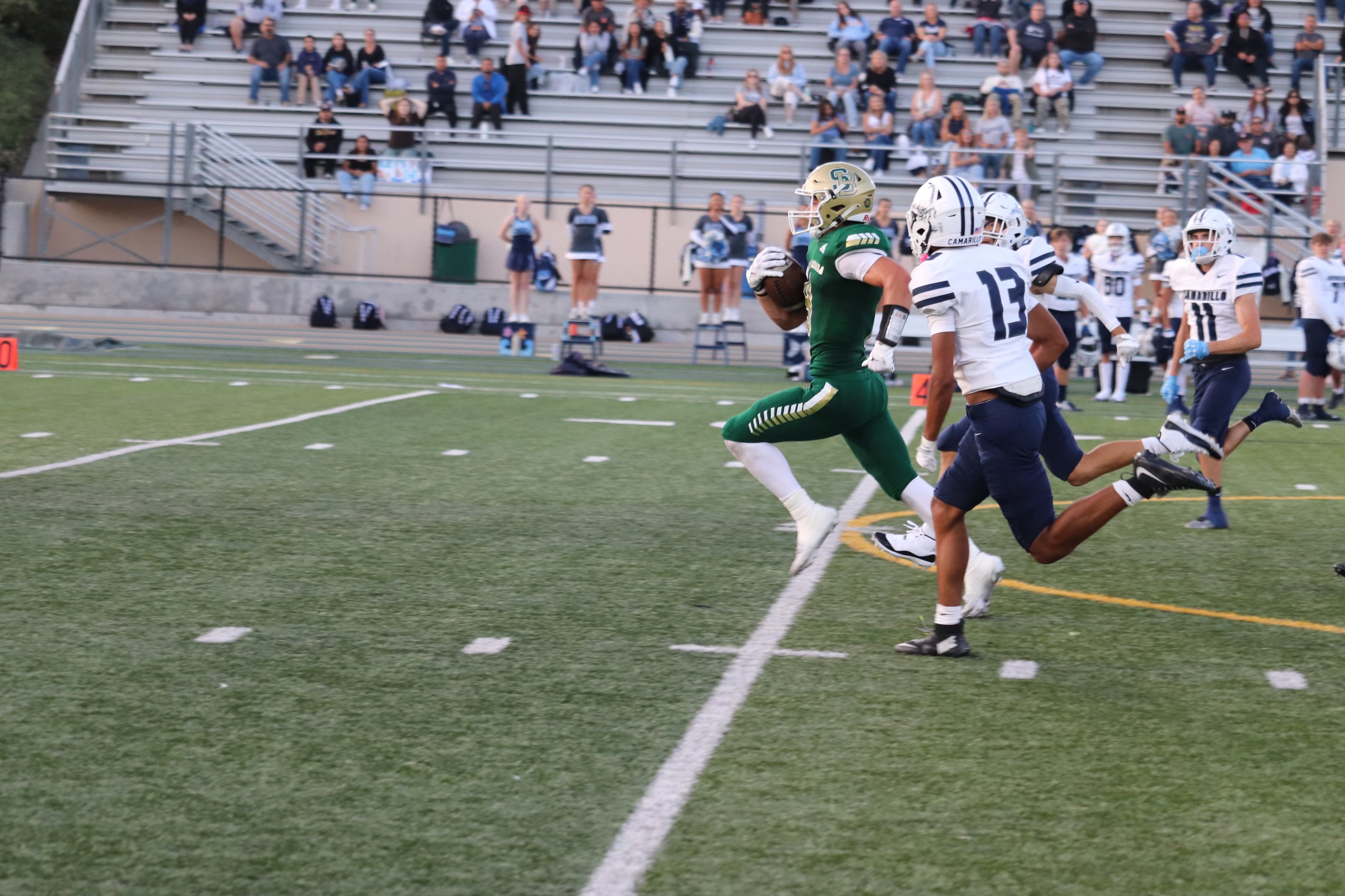 After forcing a quick three-and-out on the first Camarillo possession of the game, Santa Barbara got its first drive off to a good start with some offensive fireworks. On the fifth play, Finkel hit Mason Morales on a wheel route down the right sideline for 25 yards, setting up the Dons with a first and goal at the Camarillo 10 yard line. Three plays later, Finkel connected with Morales again, this time for a four-yard score to give the Dons their first touchdown of the year and a 7-0 lead.