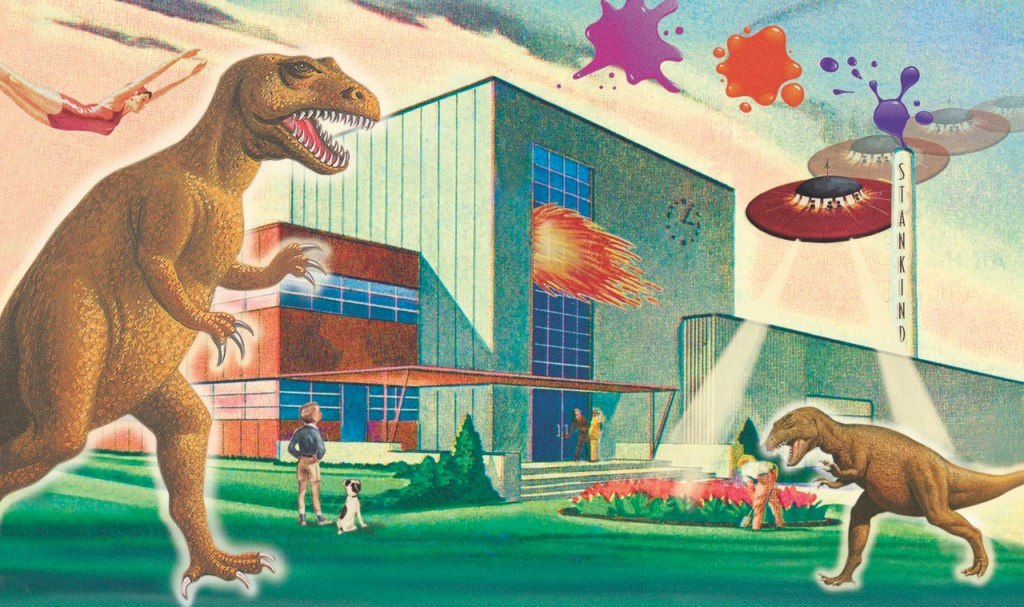 Stan and Tricia will both be exhibiting art at the opening. Hoping to shock audiences, Stan was hesitant to share too many details about his piece. He kept it intriguingly vague, saying, “I think it’ll have people surprised because I’m sure that it will be very different from the other art at the show. It’s satirical and [references] conspiracy theory and has a vintage feel, so you might get thrown back to the ’50s.”