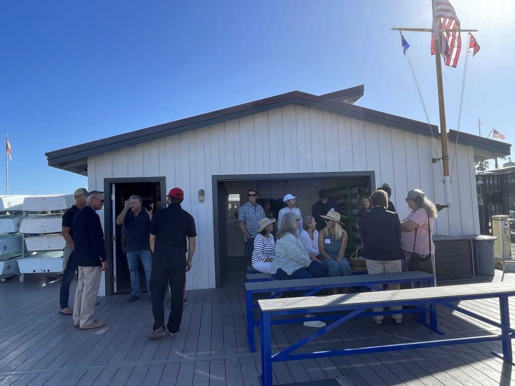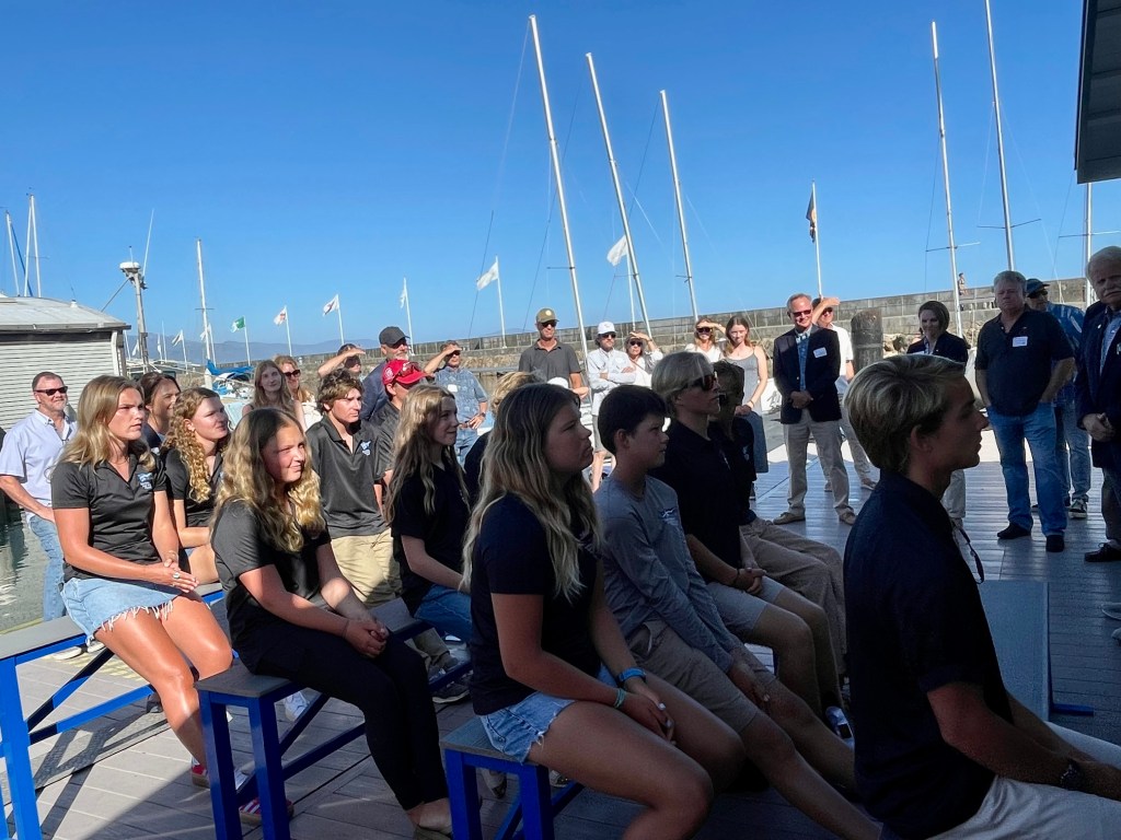 At the cutting, SBYSF President Lauren Bell, who recently took the helm of the nonprofit, welcomed donors and other guests. She shared how the foundation is dedicated to providing youth with the skills, confidence, and camaraderie that sailing offers. Many individuals were recognized for the hard work and talent they contributed to the project, but “The Erics” — Boardmember Eric Andresen and immediate past president Eric Stokke — got the highest praise for their leadership in the planning and building phases, and Andreson was lauded also for his custom woodworking.