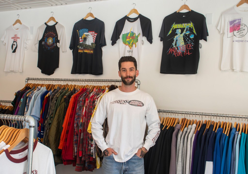 After years of selling vintage online and at pop-ups in Southern California, opening a permanent shop was a natural progression for Giffin’s business. With the help of family and friends, Giffin renovated the space himself and filled the space with racks of high-quality denim and secondhand tees in every color.